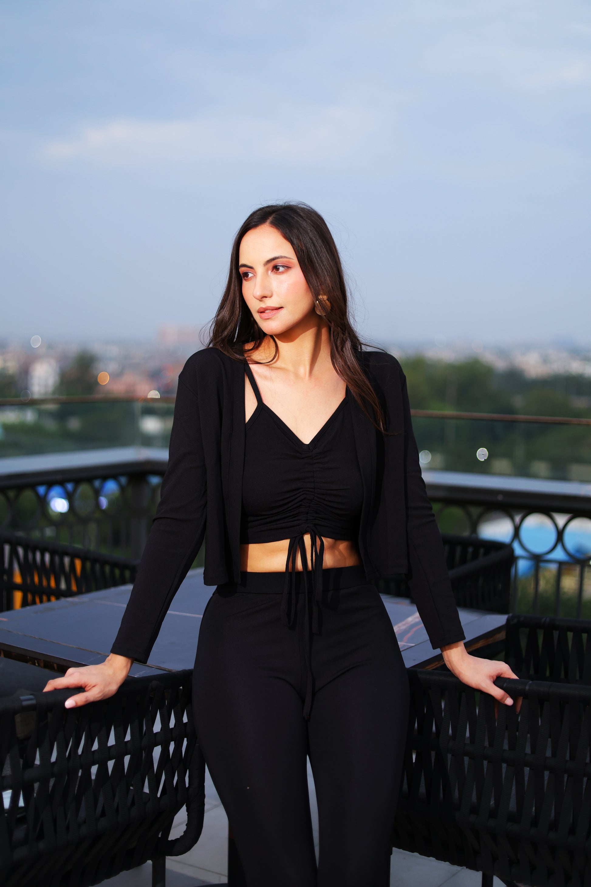 This matching coord set fuses power dressing with evening allure.